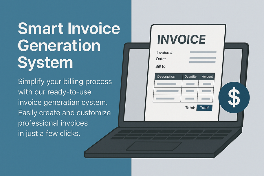 Simplify your billing process with our ready-to-use invoice generation system, built for speed, flexibility, and ease of use. The system includes a customizable dashboard where you can easily input client details, services, pricing, taxes, and more — all with intuitive fields designed for real business needs, Or have the power of automation which will be all automatic linked to any software you use and linked to your accounting.